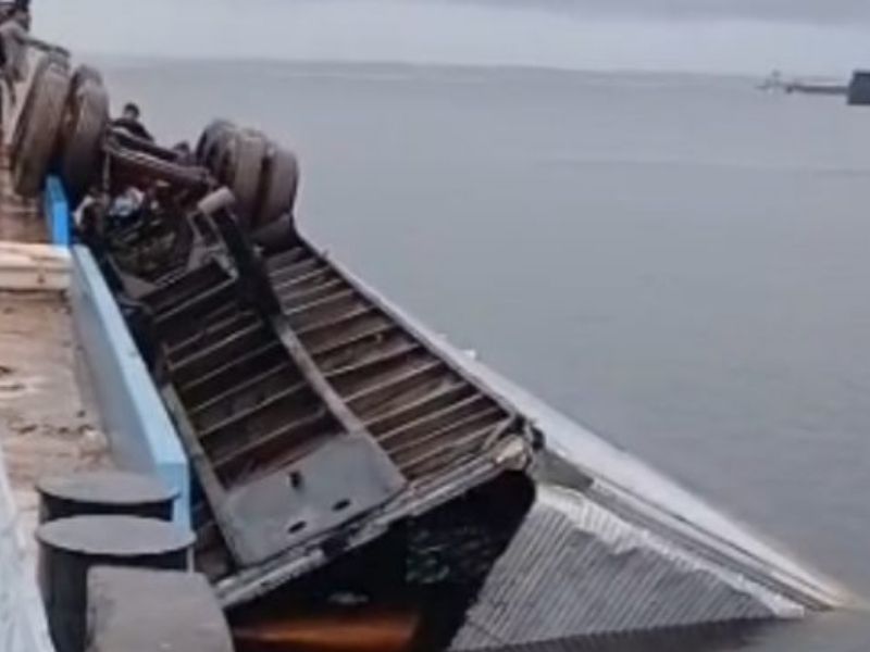 Segundo relatos de testemunhas, o caminhão perdeu a estabilidade e acabou despencando para dentro do rio, ficando parcialmente submerso. Imagens feitas por pessoas que acompanhavam a movimentação no porto mostram o veículo inclinado na água logo após o ocorrido.