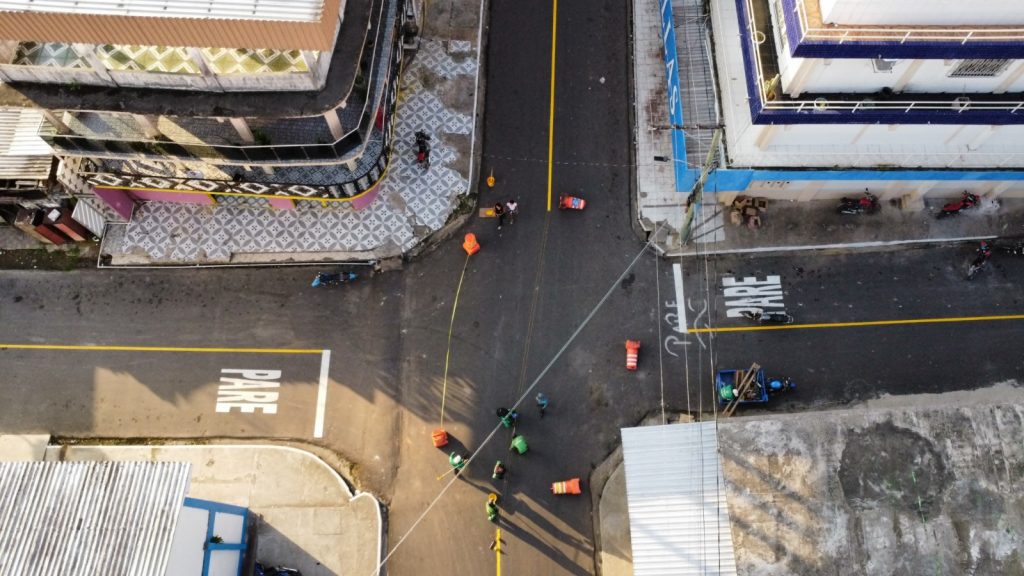 Nesta etapa, estão em andamento os serviços de sinalização horizontal, com pintura de faixas, setas e zebrados, além da sinalização vertical, com implantação de placas para garantir a correta trafegabilidade nas vias.