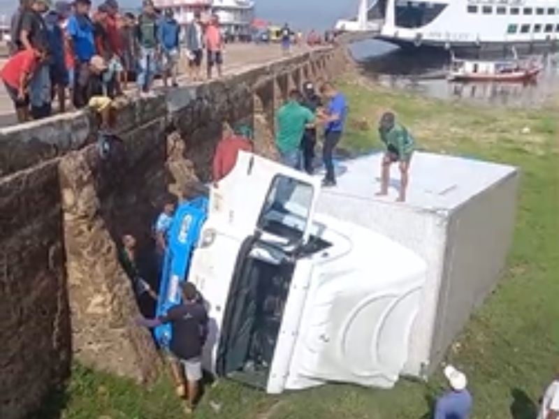 Um caminhão baú virou na manhã desta quarta-feira (3) na região conhecida como Língua da Princesa, no Centro de Maués, interior do Amazonas. O veículo tombou próximo à área de embarque improvisada. Apesar do susto, ninguém ficou ferido. O motorista foi atendido por socorristas e levado ao Hospital Geral de Maués para avaliações, permanecendo consciente durante todo o atendimento.